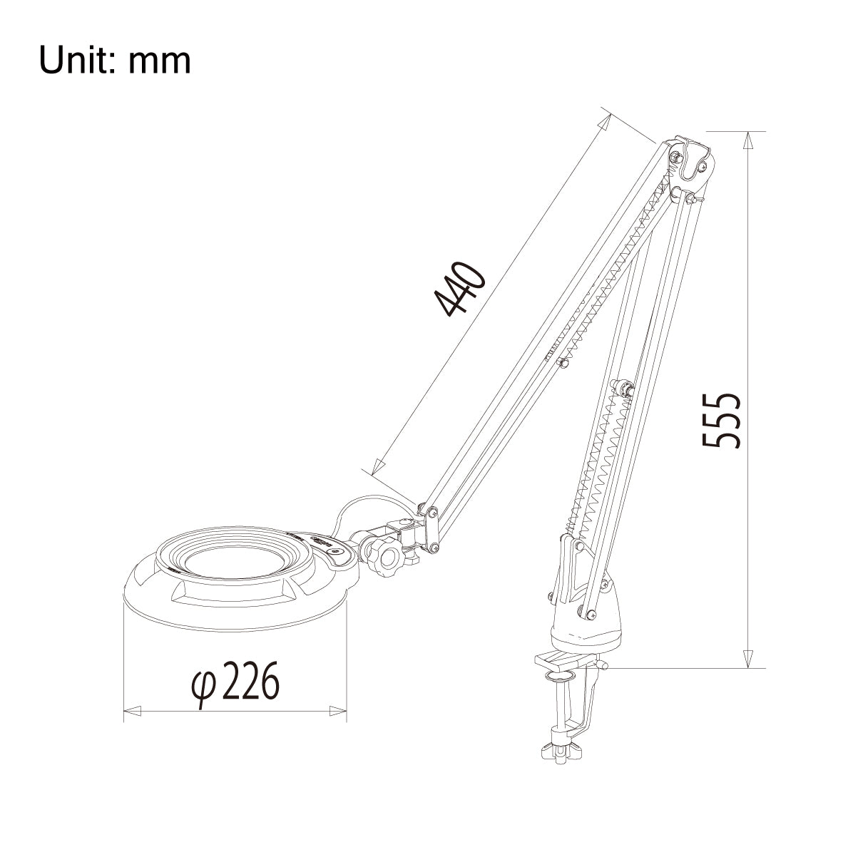 ■Product Name LED Illuminated Magnifier ■Model SKKL-F (Free-arm illuminated magnifier)